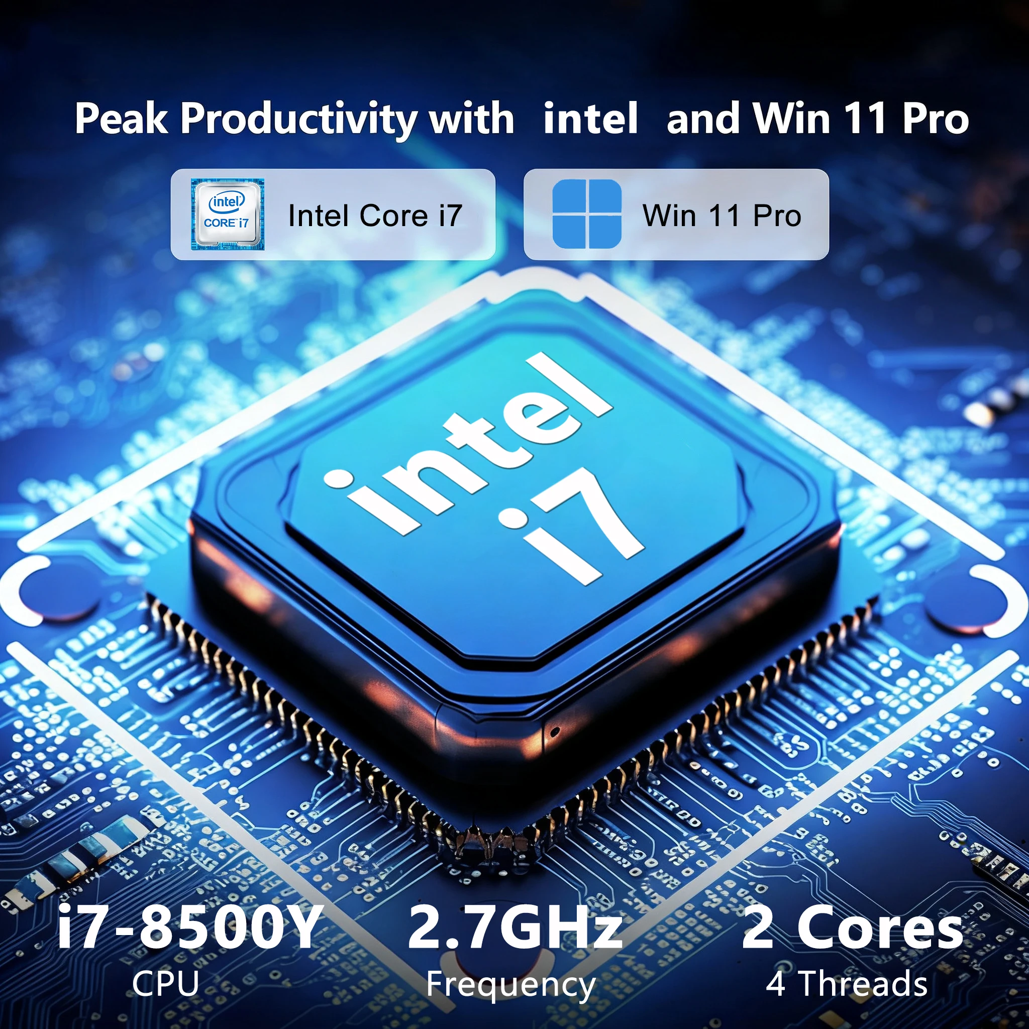 [I7 Intel processor]: Intel i7-8500Y dual-core CPU, low power consumption and high performance.