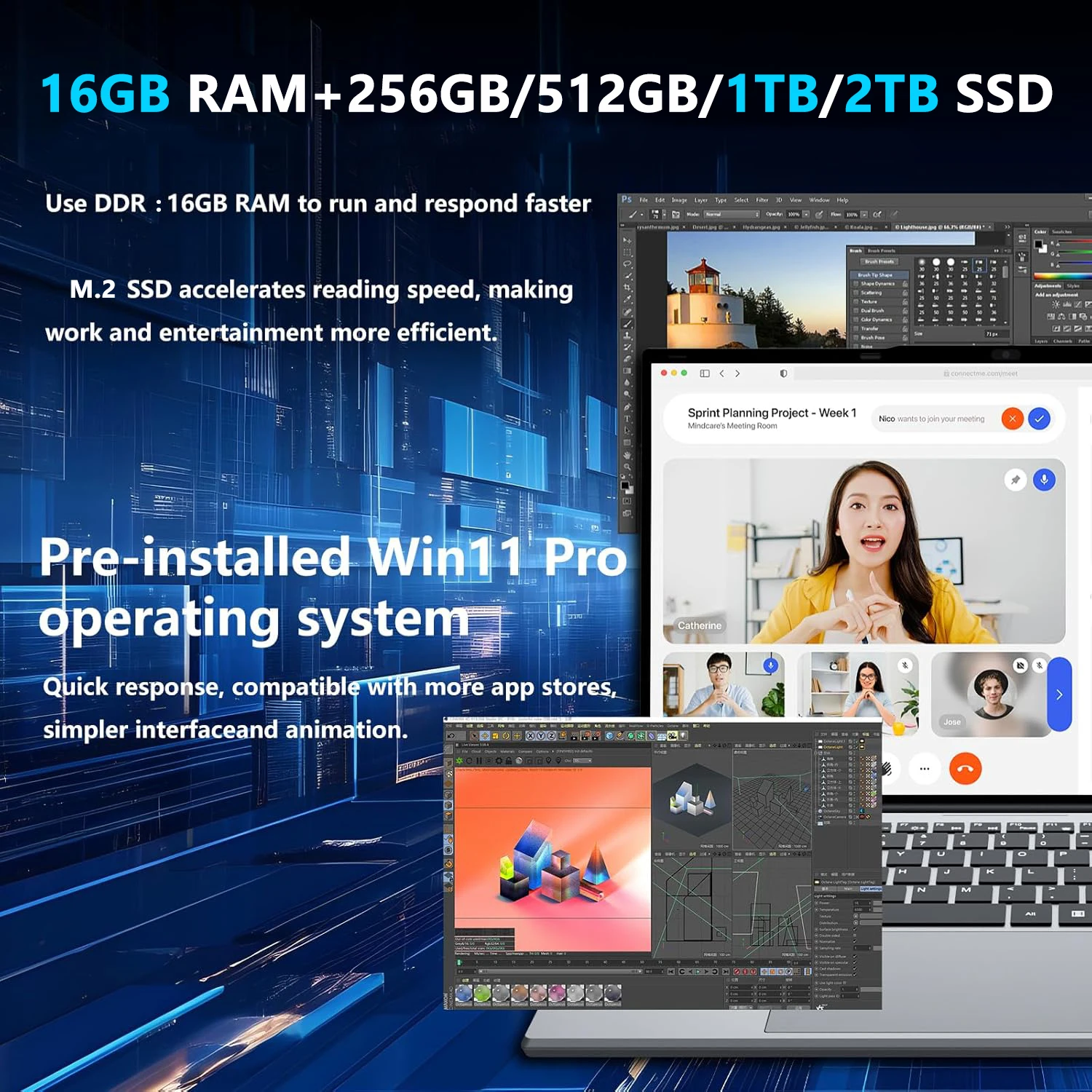 [Large memory]: The 16GB RAM dual -channel memory can greatly improve the system response speed. 256GB/512GB/1TB/2TB SSD is much faster than traditional mechanical hard disks