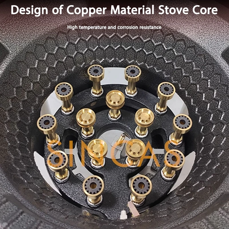 • 9-head: outer diameter of the stove plate is 34cm,inner diameter is 25cm,suitable for pots of 36-50cm