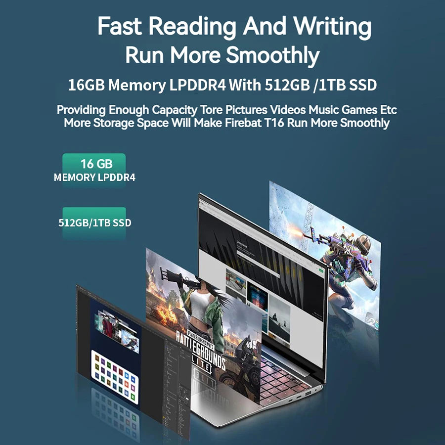 • Large display screen :The 16-inch display gives you a wide visual effect. 1920*1200 resolution, so that the color is accurately presented in front of you, giving you a rich visual experience.