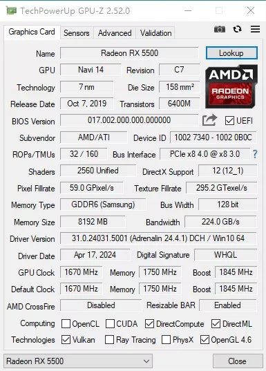 • GPU Model: AMD Radeon RX 5500XT 8GB