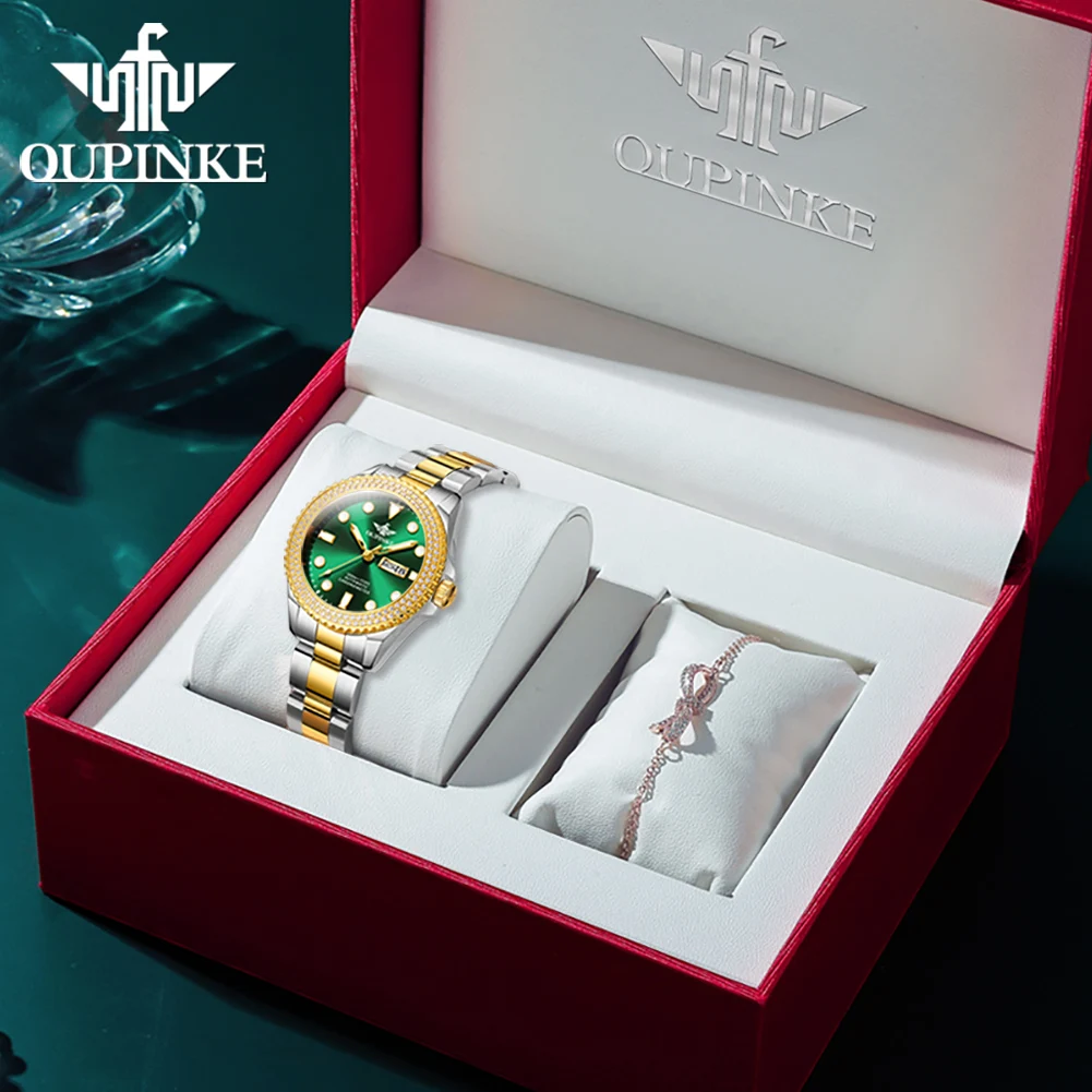 OUPINKE 3205 Full Diamond Women’s Mechanical Watch Imported Automatic Movement Luxury Brand Sapphire Crystal Watch for Women