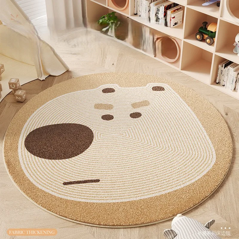 VIKAMA Cartoon Bear Round Bedroom Bedside Imitation Cashmere Carpet Children’s Room Home Sofa Anti-Slip Carpet Home Decoration