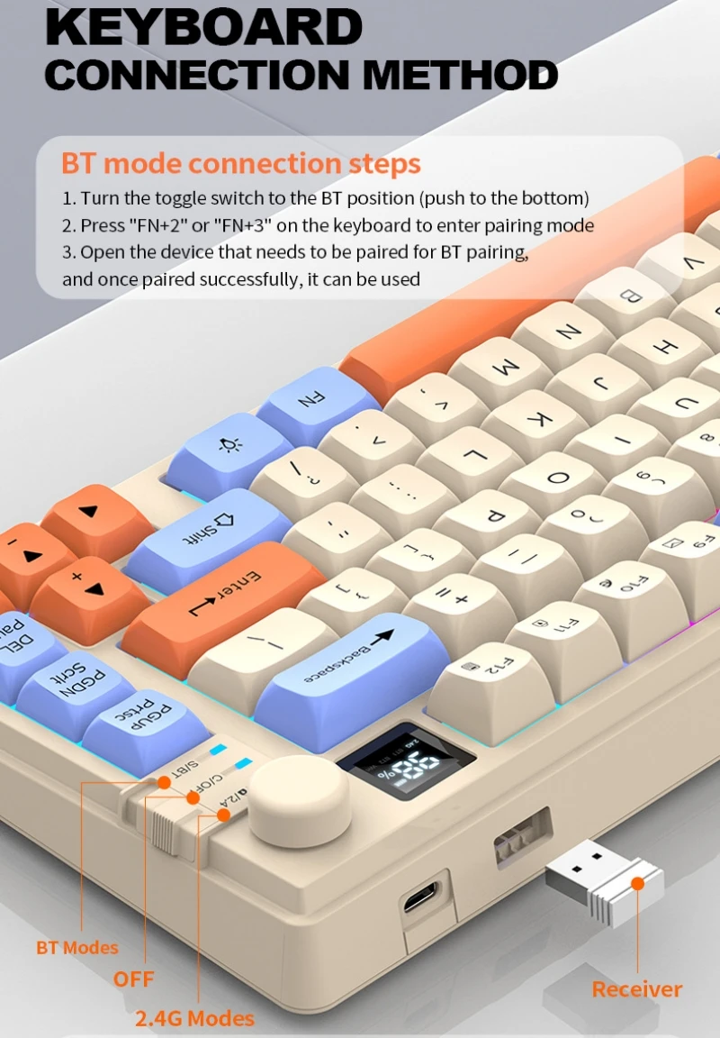 (the keyboard 2.4G USB receiver is in the mouse ,the mouse and keyboard use the same 2.4G USB receiver )